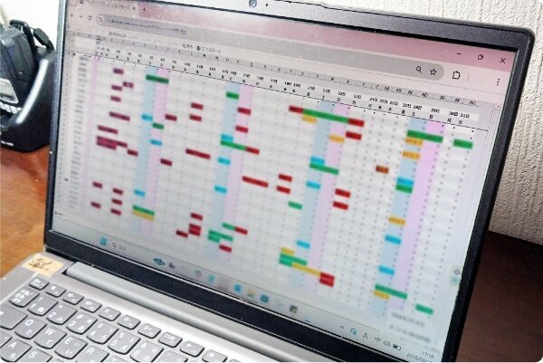 ▲外注スタッフの1か月分のシフトを1画面で管理。いつ誰がどこで仕事をしているかが一目で確認できるようになった。